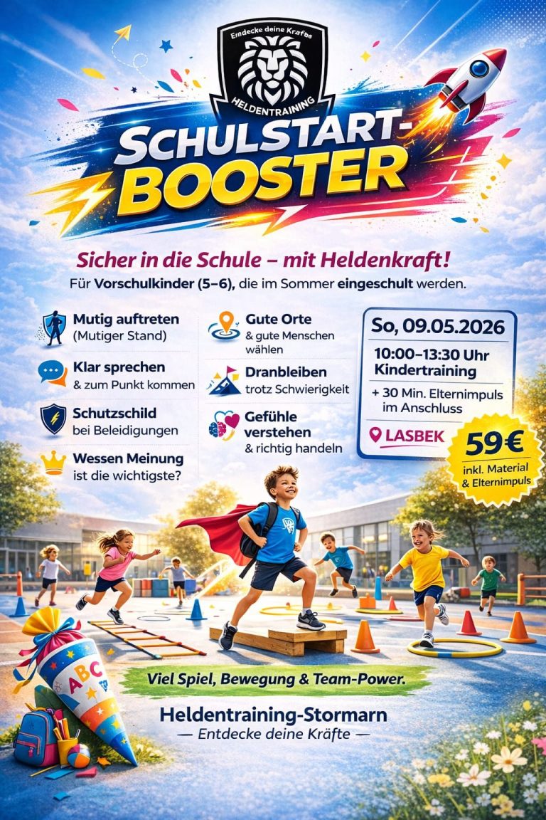 Im Schulstart-Booster stärken wir Vorschulkinder (5–6 Jahre) gezielt in Selbstbewusstsein, Kommunikation und Konfliktfähigkeit – spielerisch, bewegungsreich und alltagsnah.